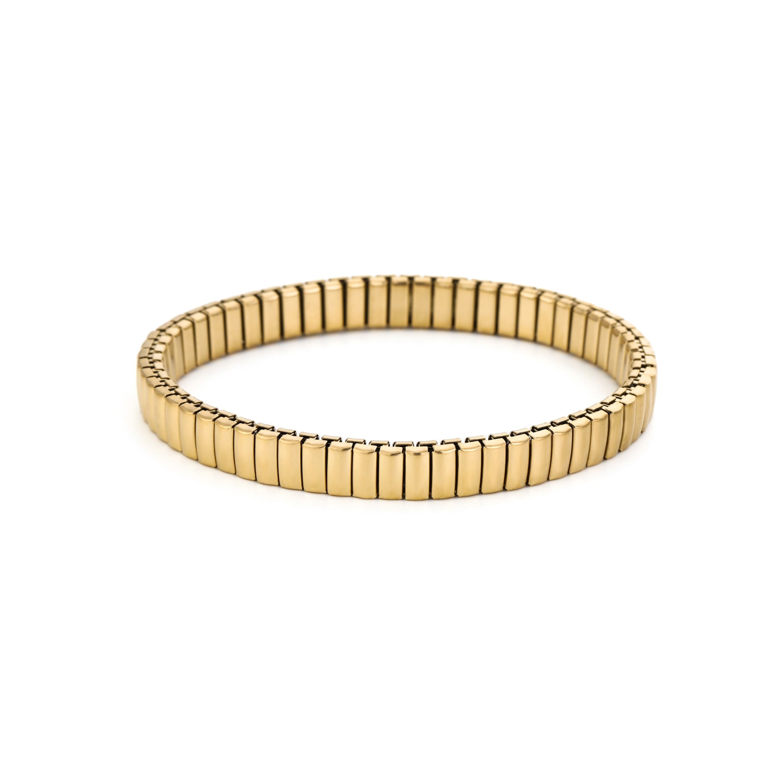Deze elegante gouden armband is de perfecte combinatie van stijl en comfort. De armband is eenvoudig om te doen en sluit hij altijd mooi aan om je pols. Verkrijgbaar in drie maten small, medium en large. Zodat jij altijd de perfecte fit vindt. Draag hem solo voor een minimalistische look of combineer met andere armbanden!