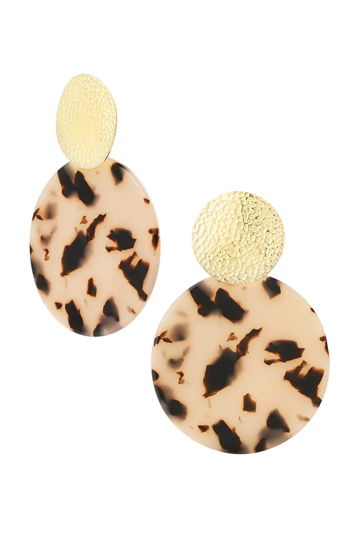Shop nu deze te gekke gouden statement Beau oorbellen met goud en print detail. De oorbellen zijn op een speelse manier leuk te combineren met meerdere sieraden met print details! De oorbellen zijn gemaakt van stainless steel en sheet materiaal en hebben een afmeting van 7 cm.